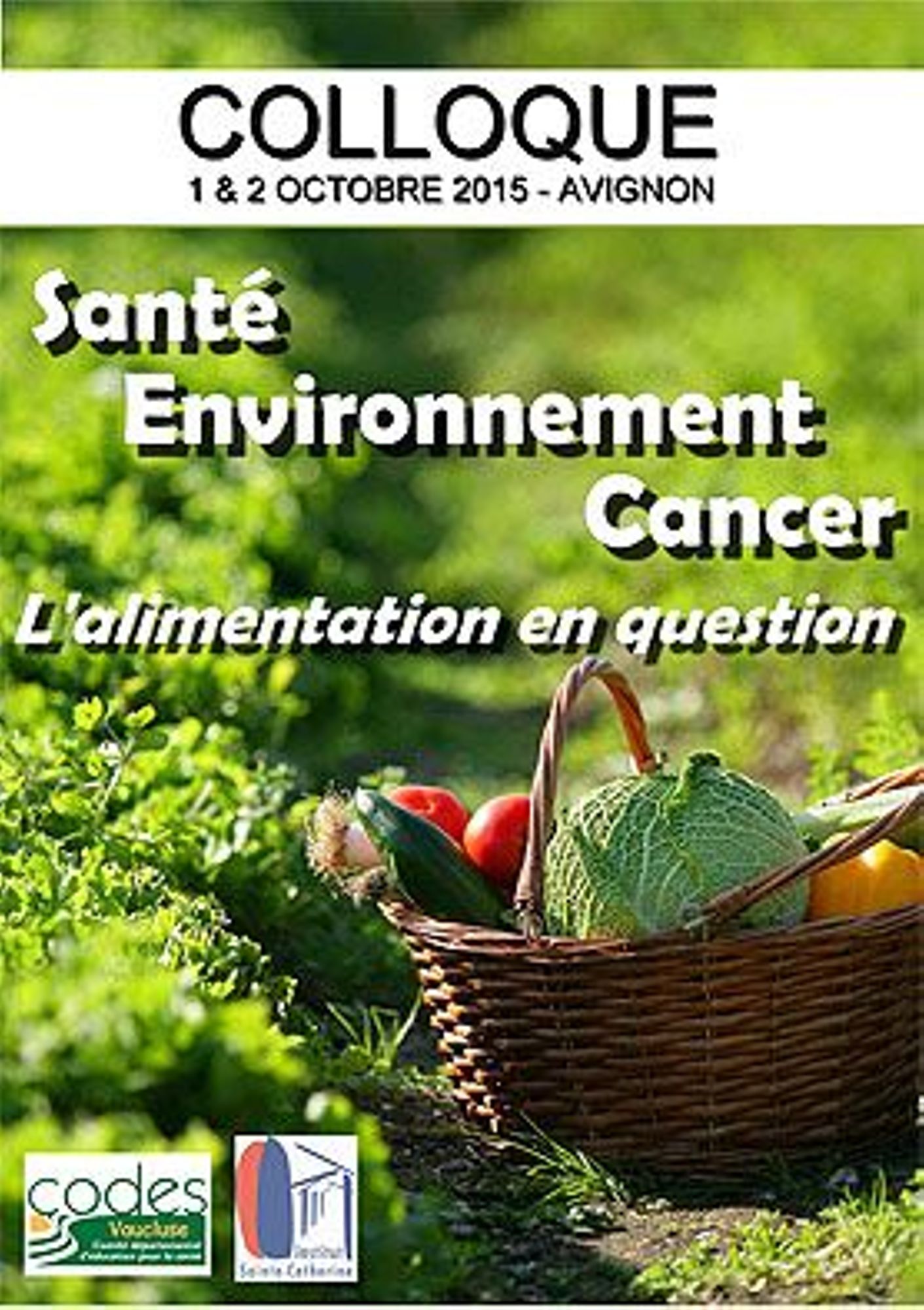 Les 1er et 2 octobre 2015 se tenait le colloque « Santé, environnement, cancer : l'alimentation en question ». Organisé par l'Institut Sainte Catherine et le CoDES de Vaucluse avec un comité d'organisation comprenant également l'ARS PACA, le Conseil départemental de Vaucluse, la Ligue contre le cancer, Sud Santé Formation, Oncosud et la MSA, l’objectif était de faire un point sur les liens entre l’alimentation et le cancer et également sur les facteurs environnementaux associés.