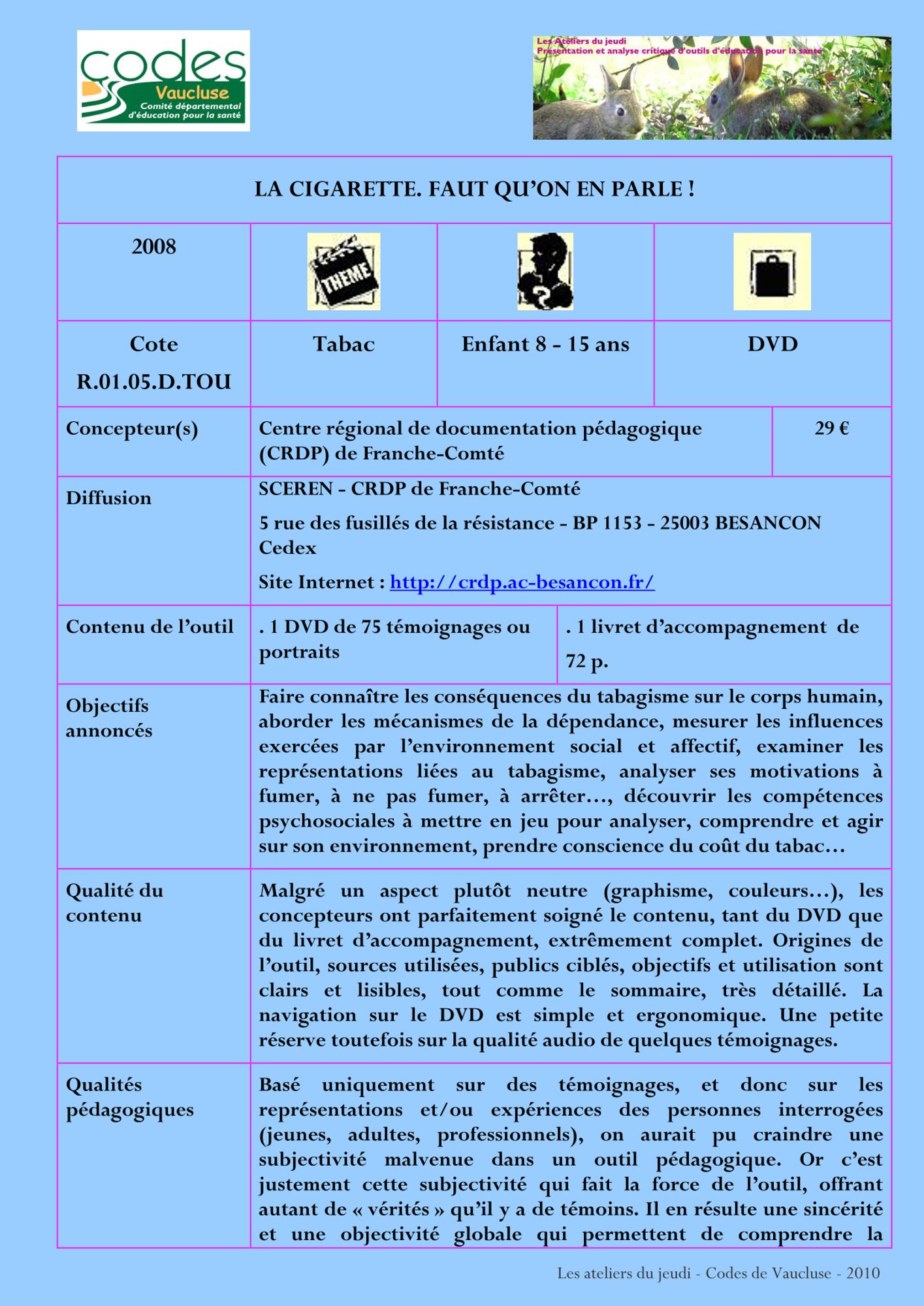 Adultes Dernière modification : 26 février 2024 Histoire de dire (290.7 Ko) La cigarette. Faut qu'on en parle ! (304.5 Ko)