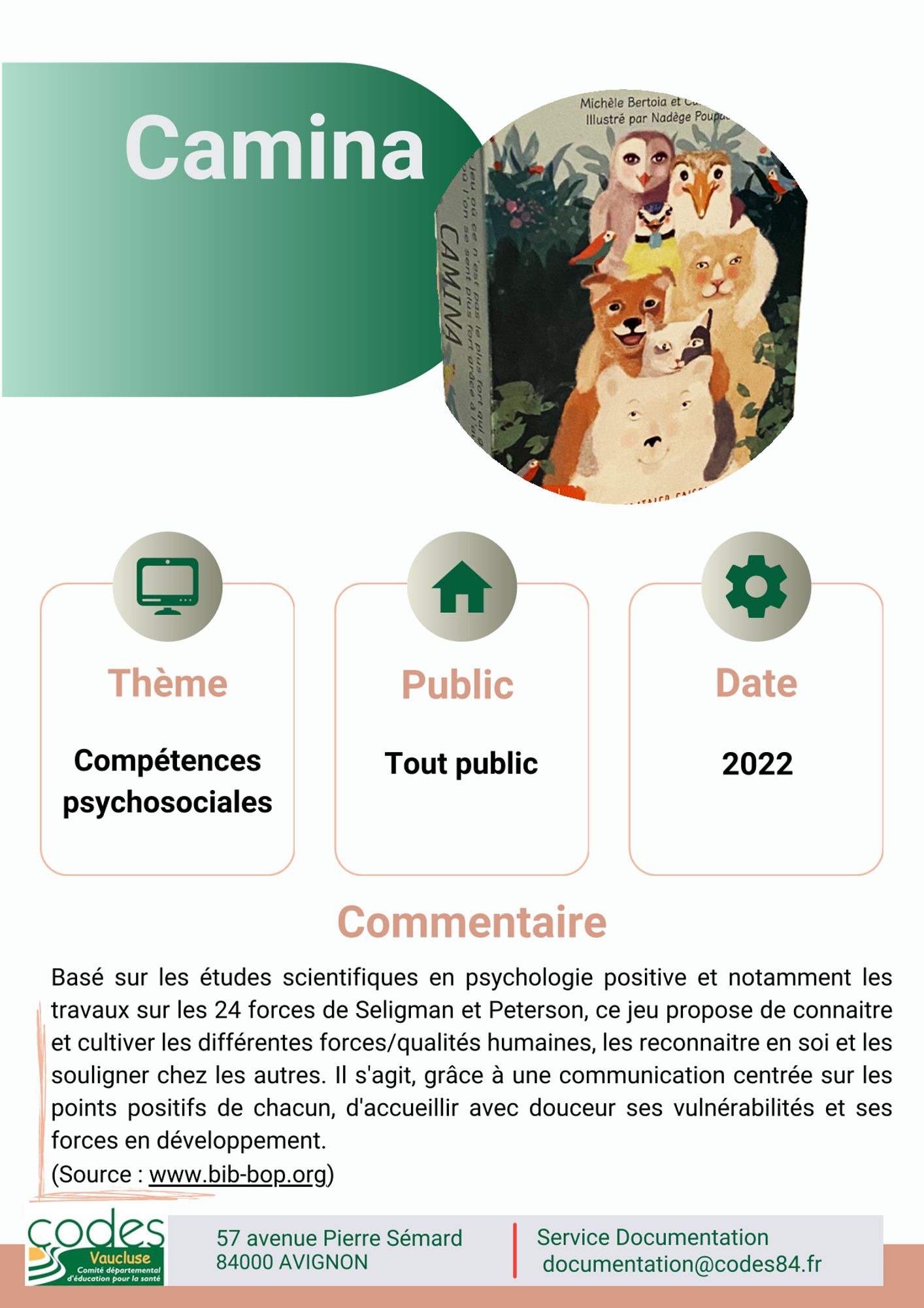 Compétences psychosociales Dernière modification : 25 juin 2024 #InfoJeunesProstitution (224.5 Ko) Class'Parents. L'enfant, l'école & moi ! (155.8 Ko) Camina (798.1 Ko) Toi moi nous ! (166.0 Ko) Les outils CPS - Mindful (250.6 Ko) Papillagou et les enfants de Croque-Lune (341.5 Ko) Grandir (311.8 Ko) Décode le monde (293.9 Ko)