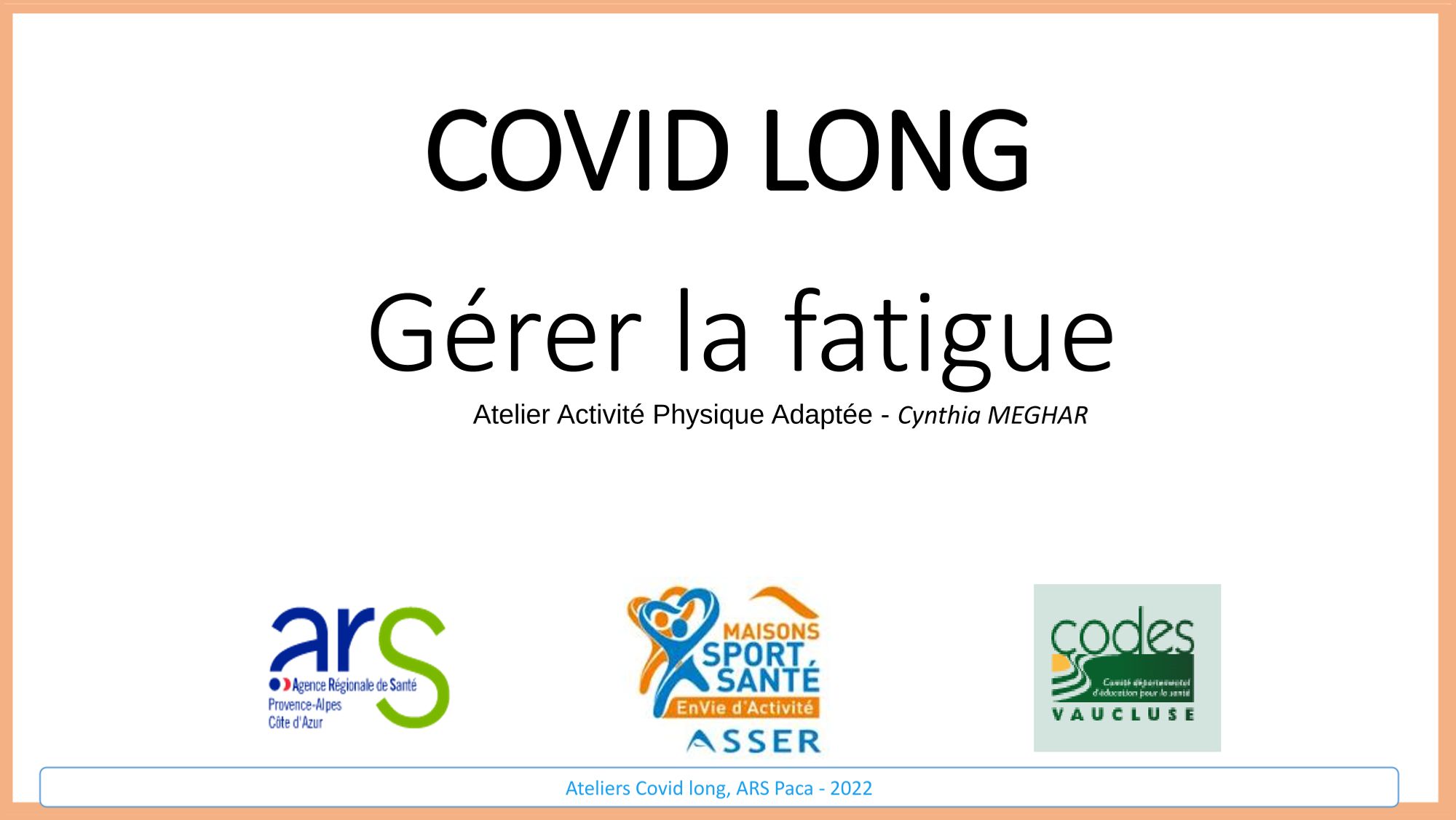 - Atelier sur la fatigue chronique, animé par Cynthia MEGHAR, enseignante en activité physique adaptée à Sorgues, proposition d’exercices, de conseils, d’orientations et réponses aux questions le 21/06/2022 de 17h30 à 19h00