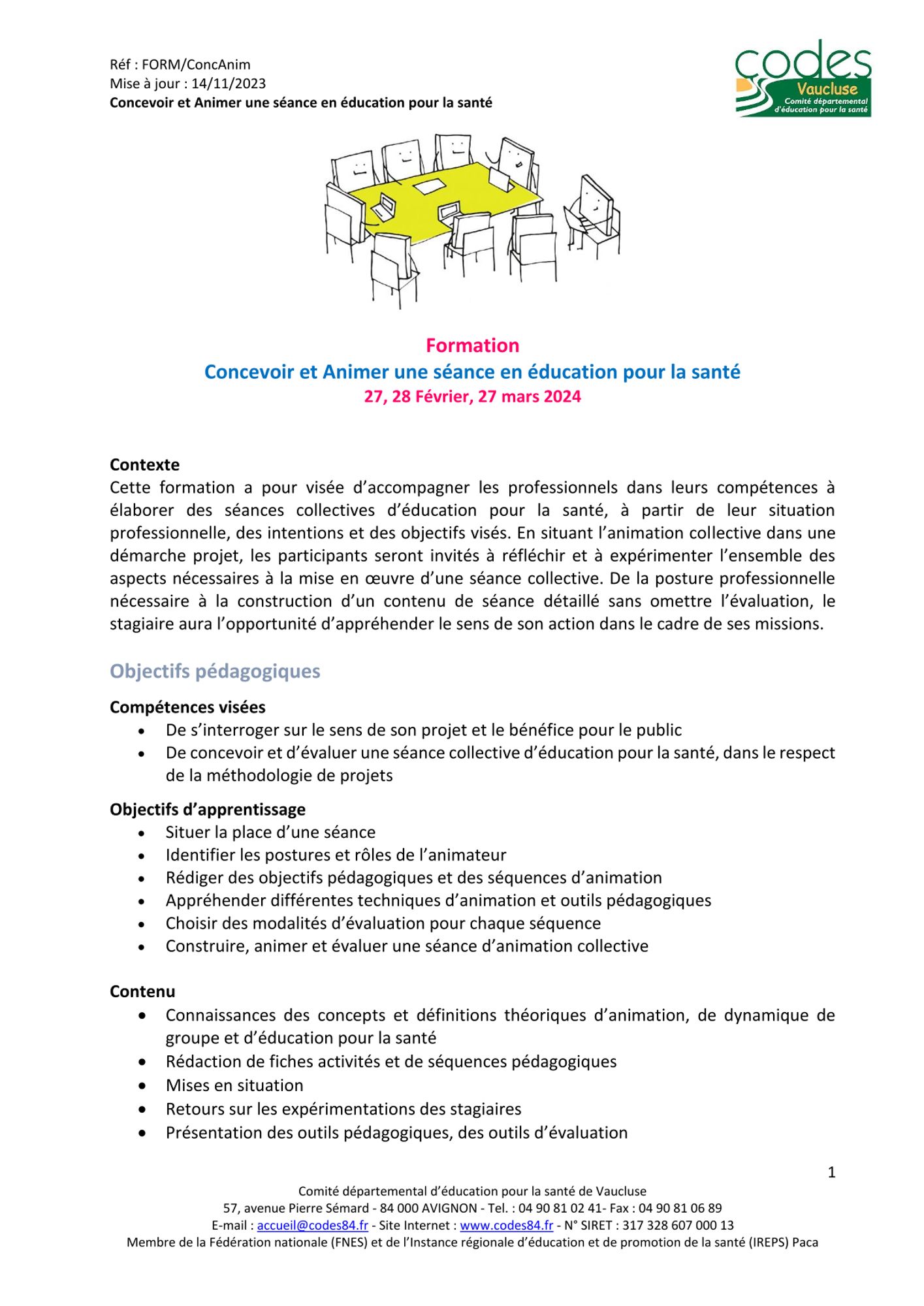 - De concevoir et d’évaluer une séance collective d’éducation pour la santé, dans le respect de la méthodologie de projets