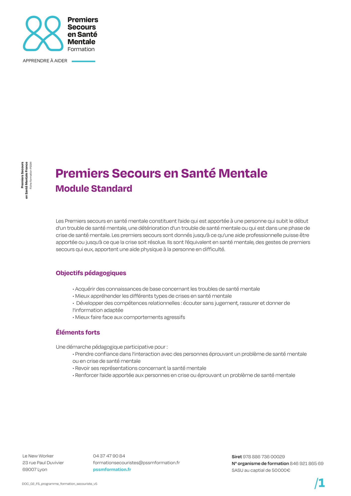 Le CoDES 84 est prestataire de service pour cette formation dont le programme officiel, national et réglementé, est porté par l'association PSSM France.