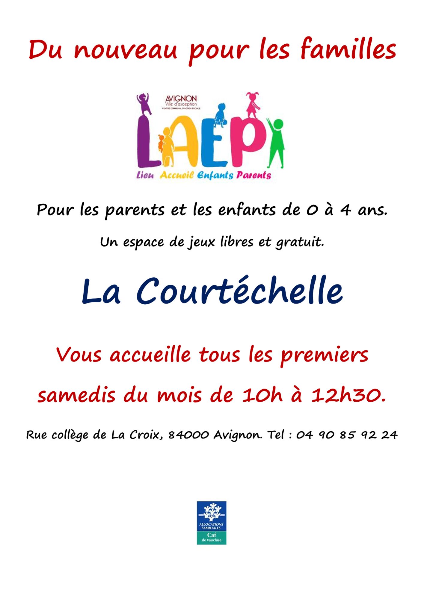 Le Lieux d’Accueil Enfant Parent – LAEP LA Courtéchelle à Avignon vous propose dorénavant un accueil :