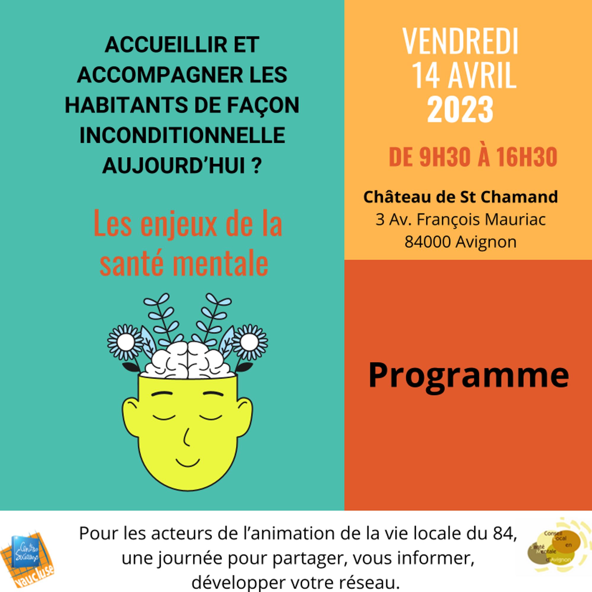 La Fédération des centres sociaux de Vaucluse s’associe au Conseil Local en Santé Mentale d’Avignon, aux Ateliers Santé Ville du Territoire (Avignon, Apt, Carpentras) , à l’association des pair-aidants PREUVE en lien avec des institutions et associations œuvrant pour la santé mentale dans notre département pour proposer une journée de réflexion, d’échanges et de rencontres autour de la santé mentale aux professionnels de la vie Locale du département le :