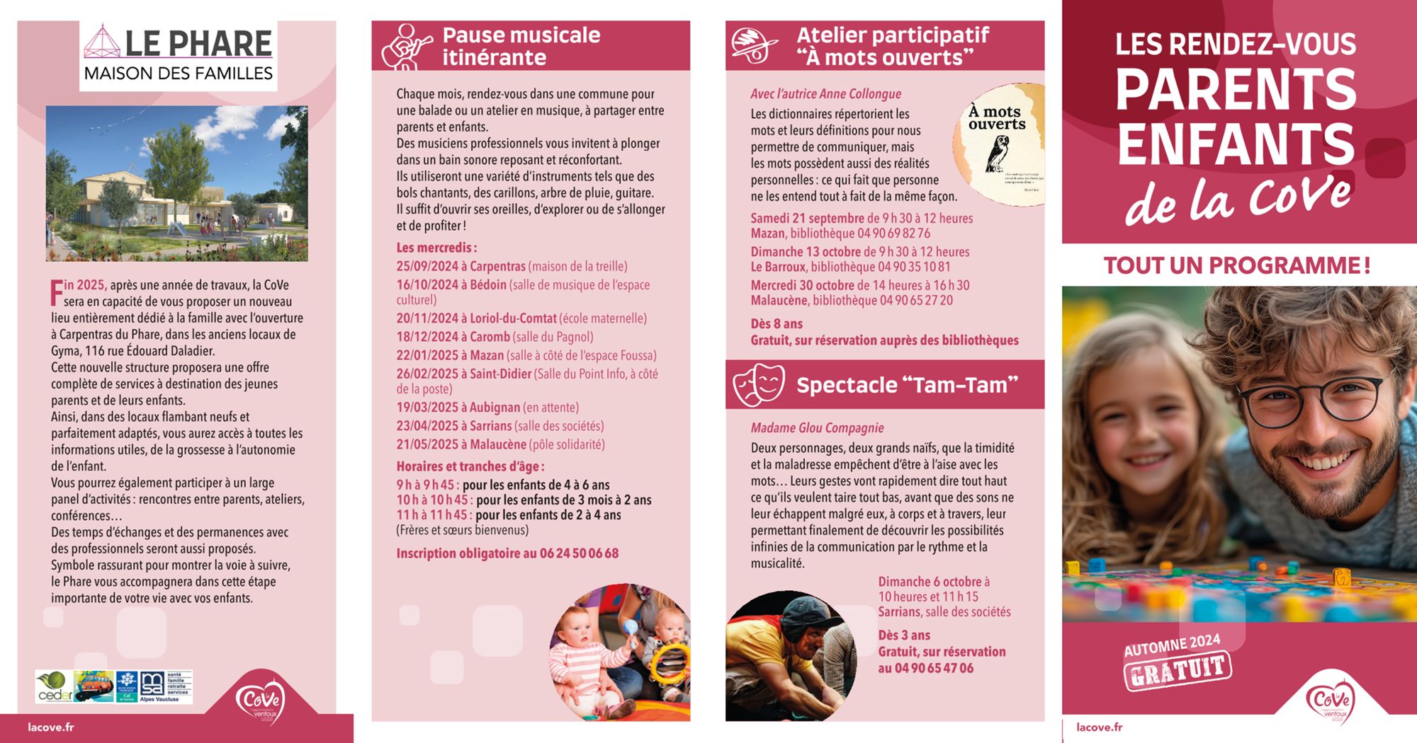 Dès le samedi 21 septembre, une programmation d’actions hors les murs en amont de l’ouverture du Phare est proposée gratuitement aux familles sur de nombreuses communes de la CoVe.