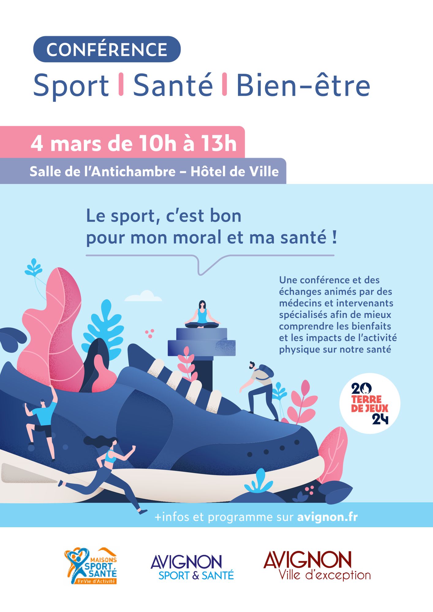 Cette conférence a pour objectif d'informer sur les bienfaits du sport sur la santé physique et mentale. Elle aura lieu le :