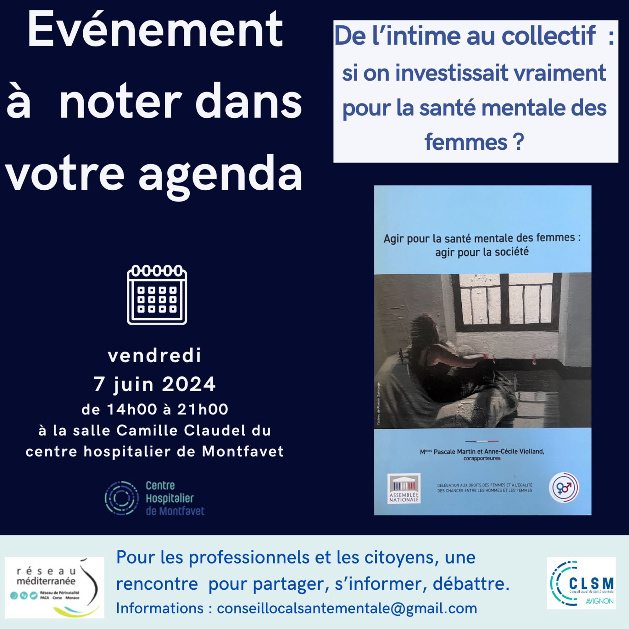 De l'intime au collectif : si on investissait vraiment pour la santé mentale des femmes ? Le programme Santé mentale / Suicide - 7 juin 2024 Dernière modification : 28 mai 2024 Téléchargez le programme complet (4.4 Mo) Je m'inscris à la journée