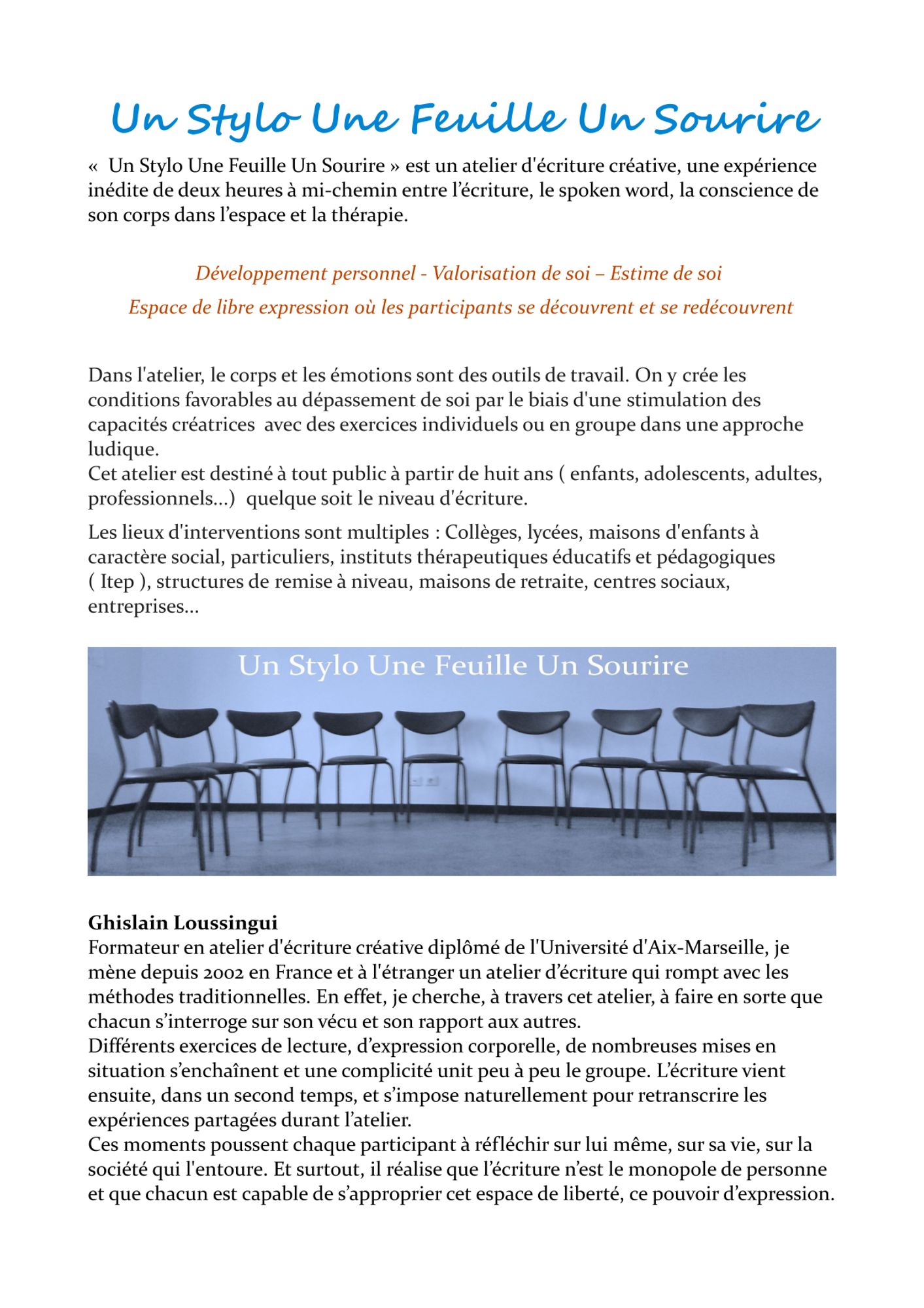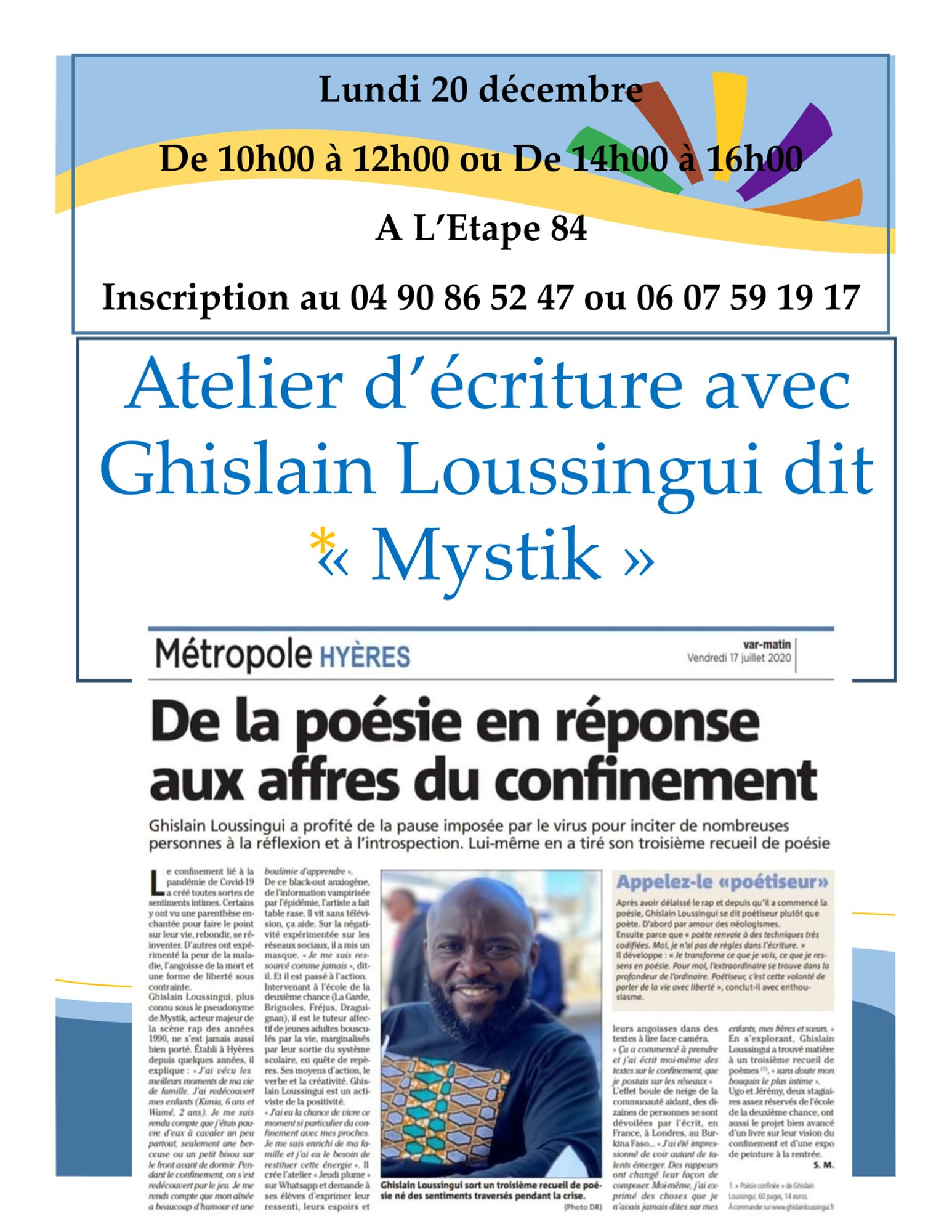 L'Etape 84 organisera également 2 ateliers supplémentaires durant les vacances de Noël cette fois avec un intervenant extérieur ayant pour titre "Un stylo, une feuille, un sourire".
