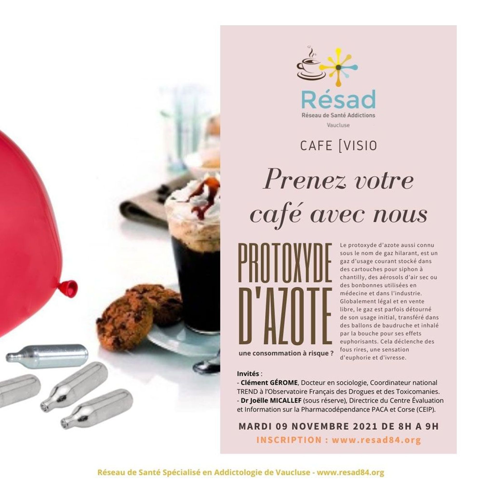 Résad 84, Réseau de Santé Spécialisé en Addictologie en Vaucluse, organise un "Café-Visio" pour informer et débattre autour du protoxyde d'azote, parfois détourné de son usage initial et inhalé pour ses effets euphorisants. Ce café aura lieu le :