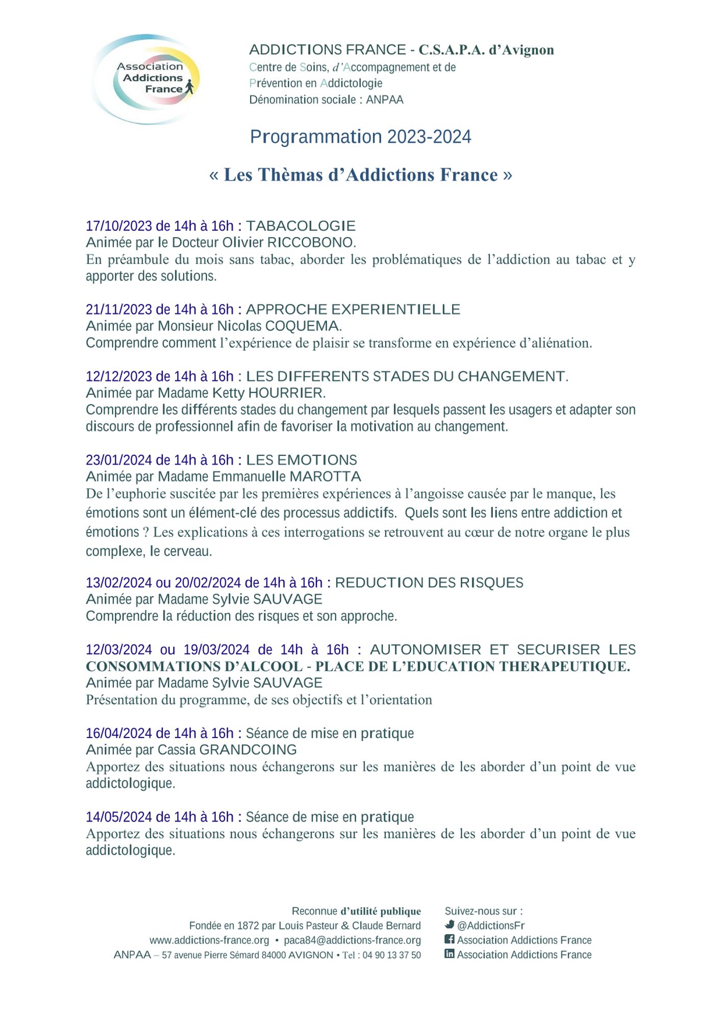 Dans le but de poursuivre le travail de collaboration avec ses partenaires, Addictions France met en place "Les Thèmas d’Addictions France".