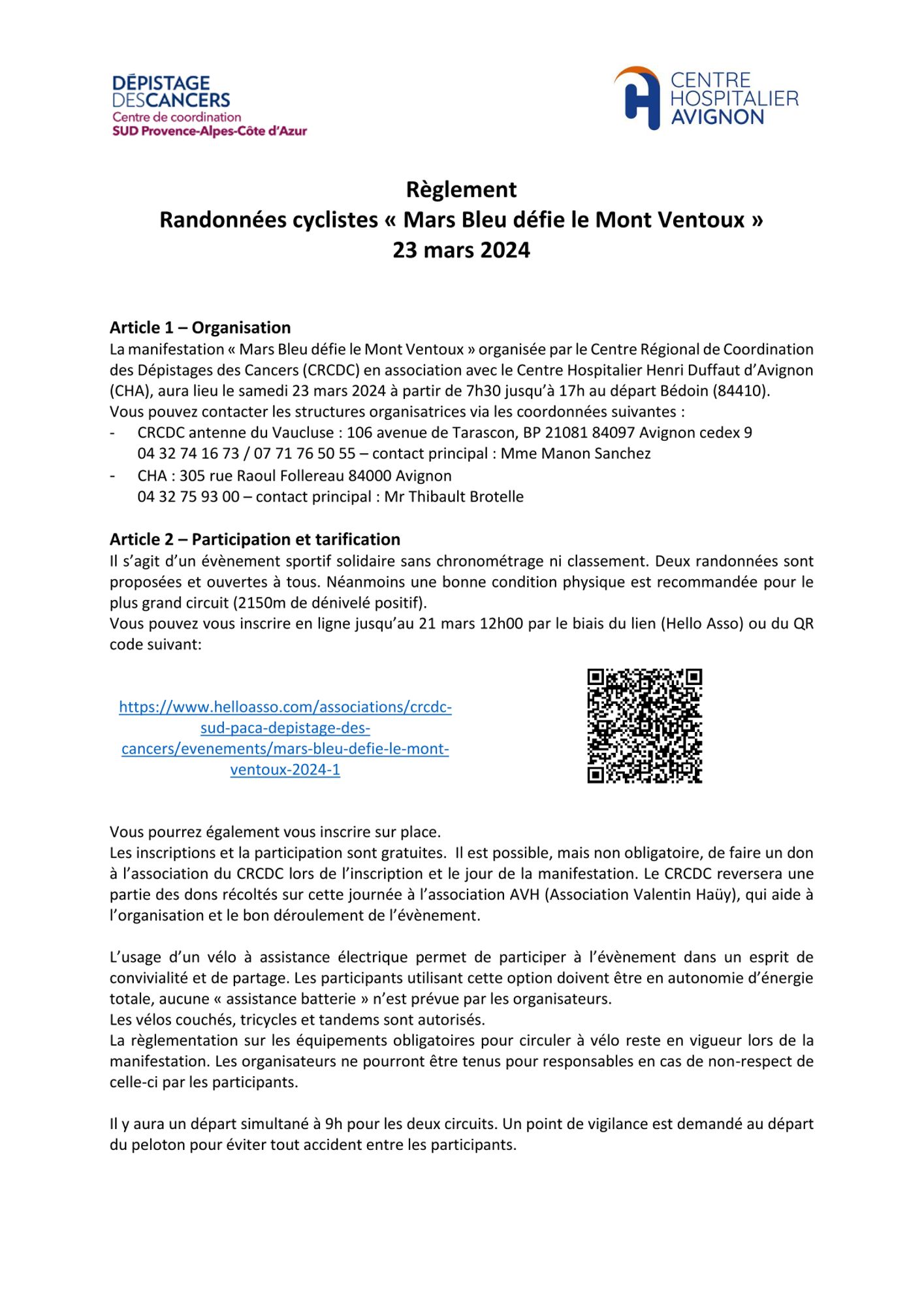 Samedi 23 mars 2024 à partir de 7h30