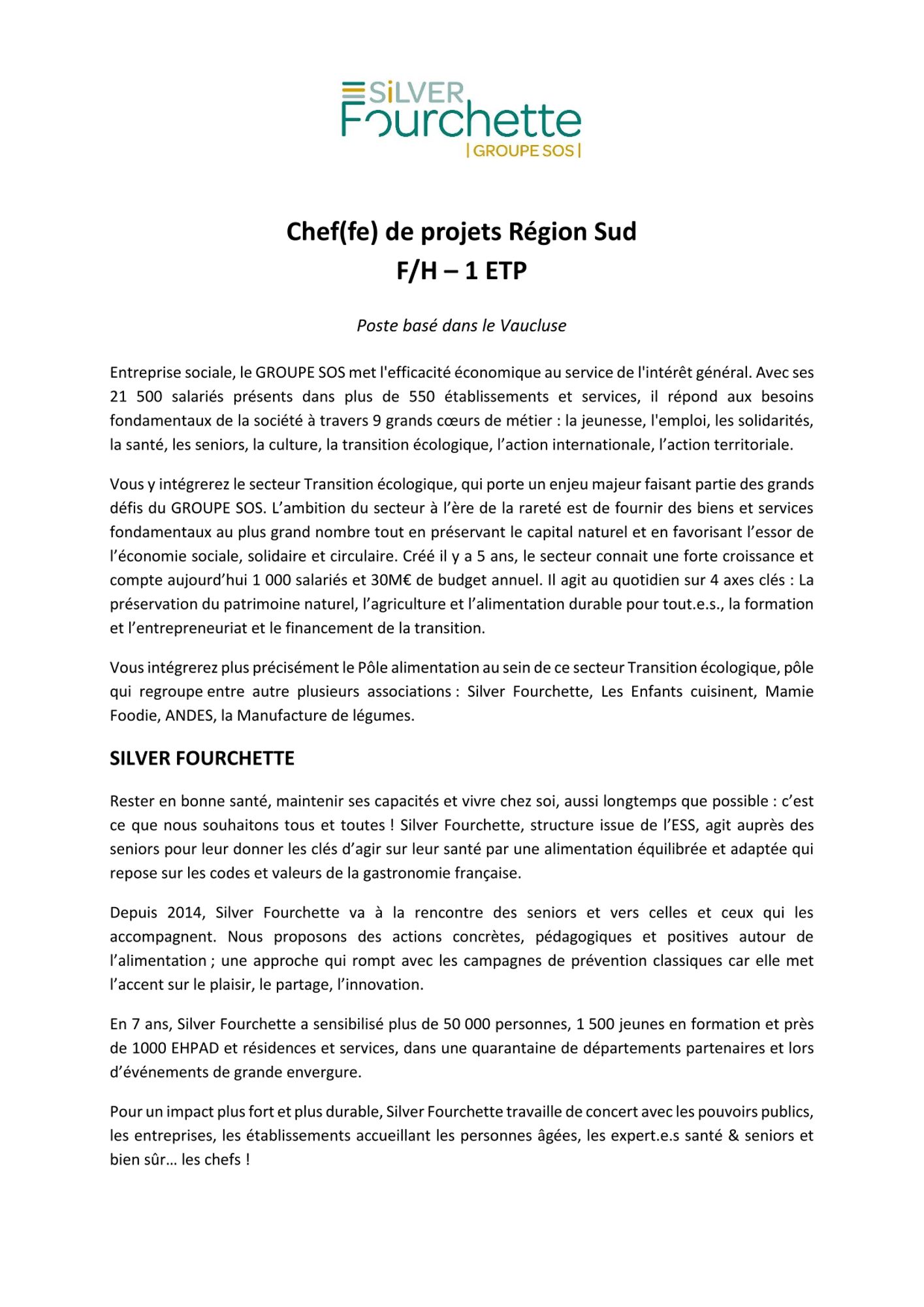 Offre d'emploi chef(fe) de projets Silver Fourchette