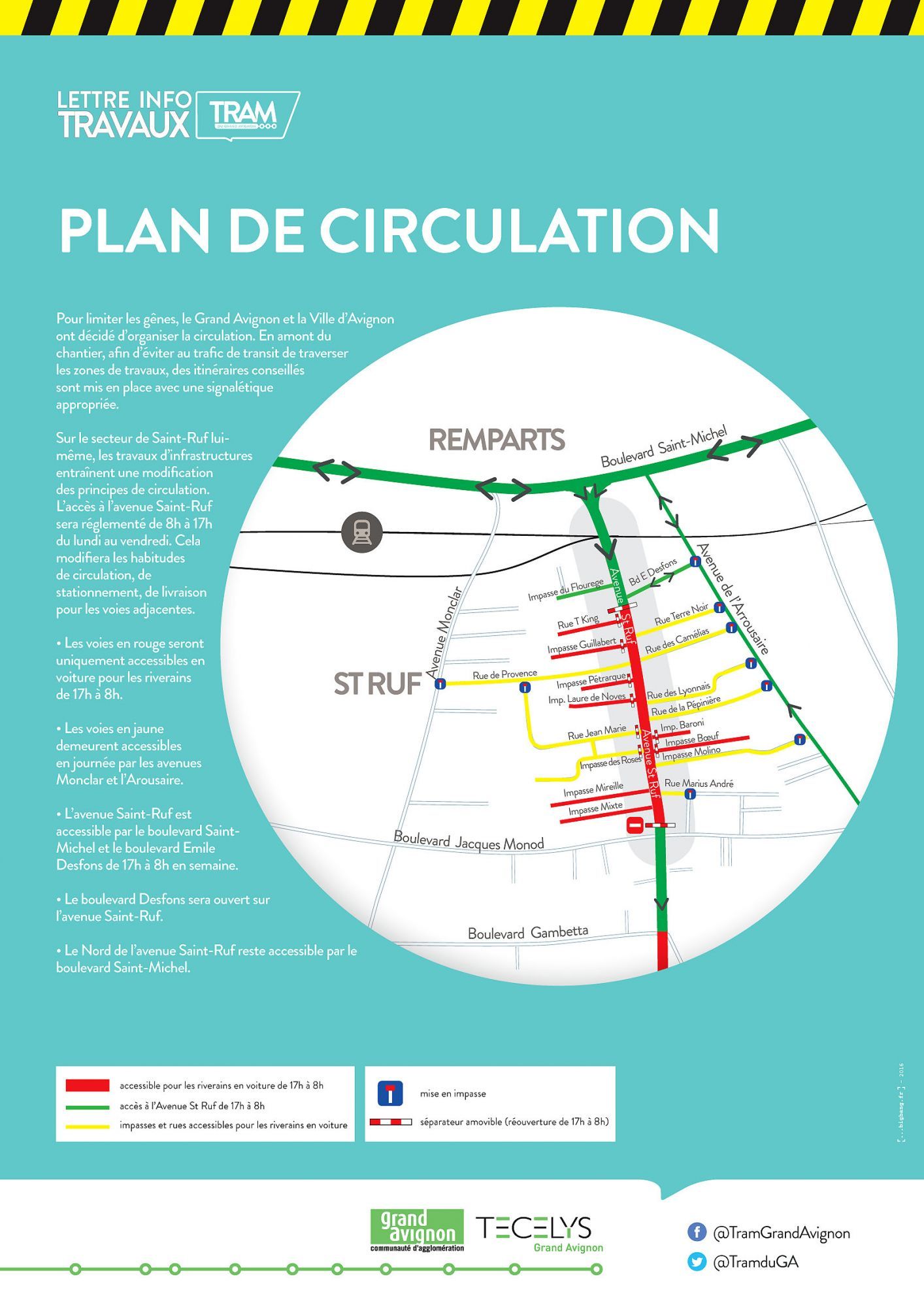 Vous trouverez ci-joint en image et en pdf le plan de circulation du quartier établi par le Grand Avignon à compter d'octobre 2017.