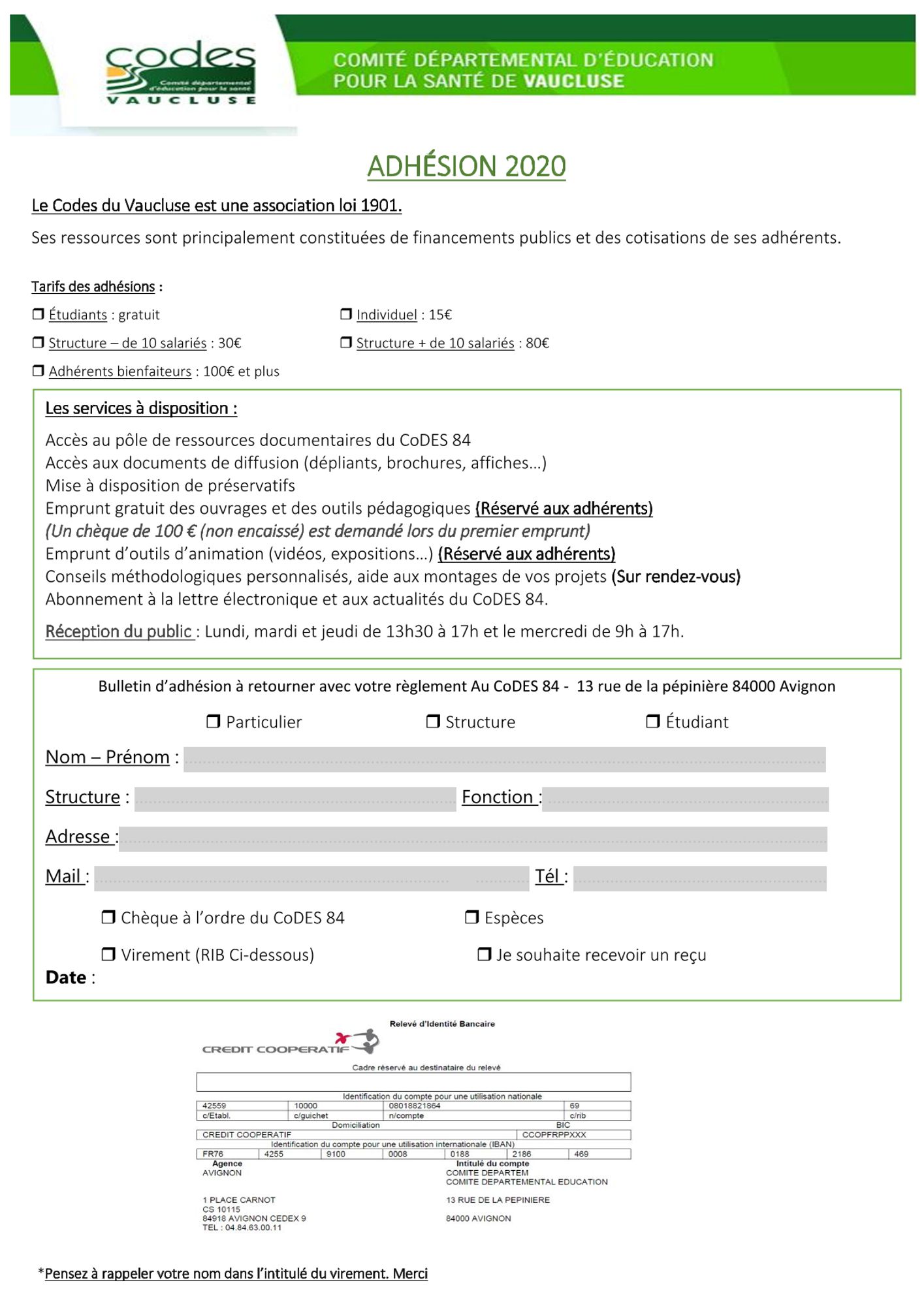 Le CoDES 84 est une association loi 1901, dont l’activité est financée par des financements publics, mais aussi par le montant des cotisations de ses adhérents, qui lui assure une part de son indépendance.