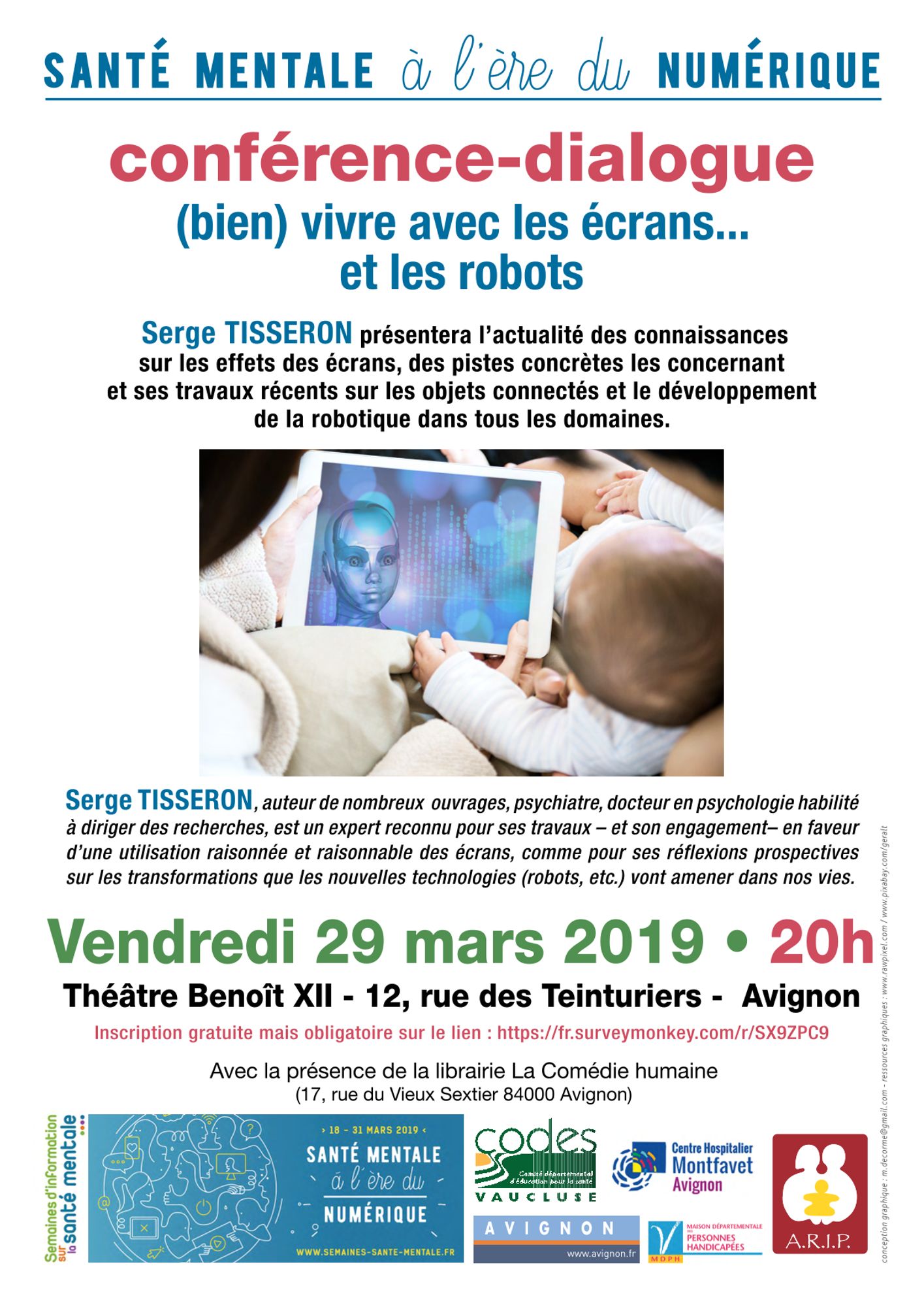 Conférence organisée par l'ARIP, le CLSM d’Avignon, le CODES 84 et la MDPH, dans le cadre des Semaines d’information sur la santé mentale 2019.