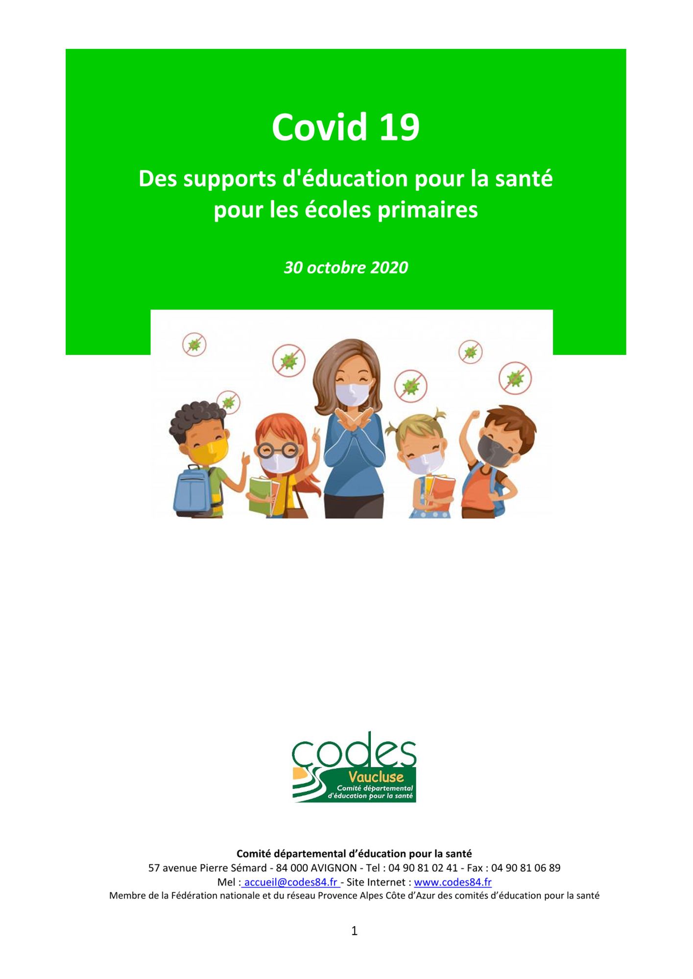Dans la continuité du guide réalisé en mai 2020, le CoDES de Vaucluse propose aux équipes des écoles primaires du département quelques références en éducation pour la santé afin de les accompagner dans la mise en oeuvre des recommandations du protocole sanitaire de l’éducation nationale de novembre 2020.