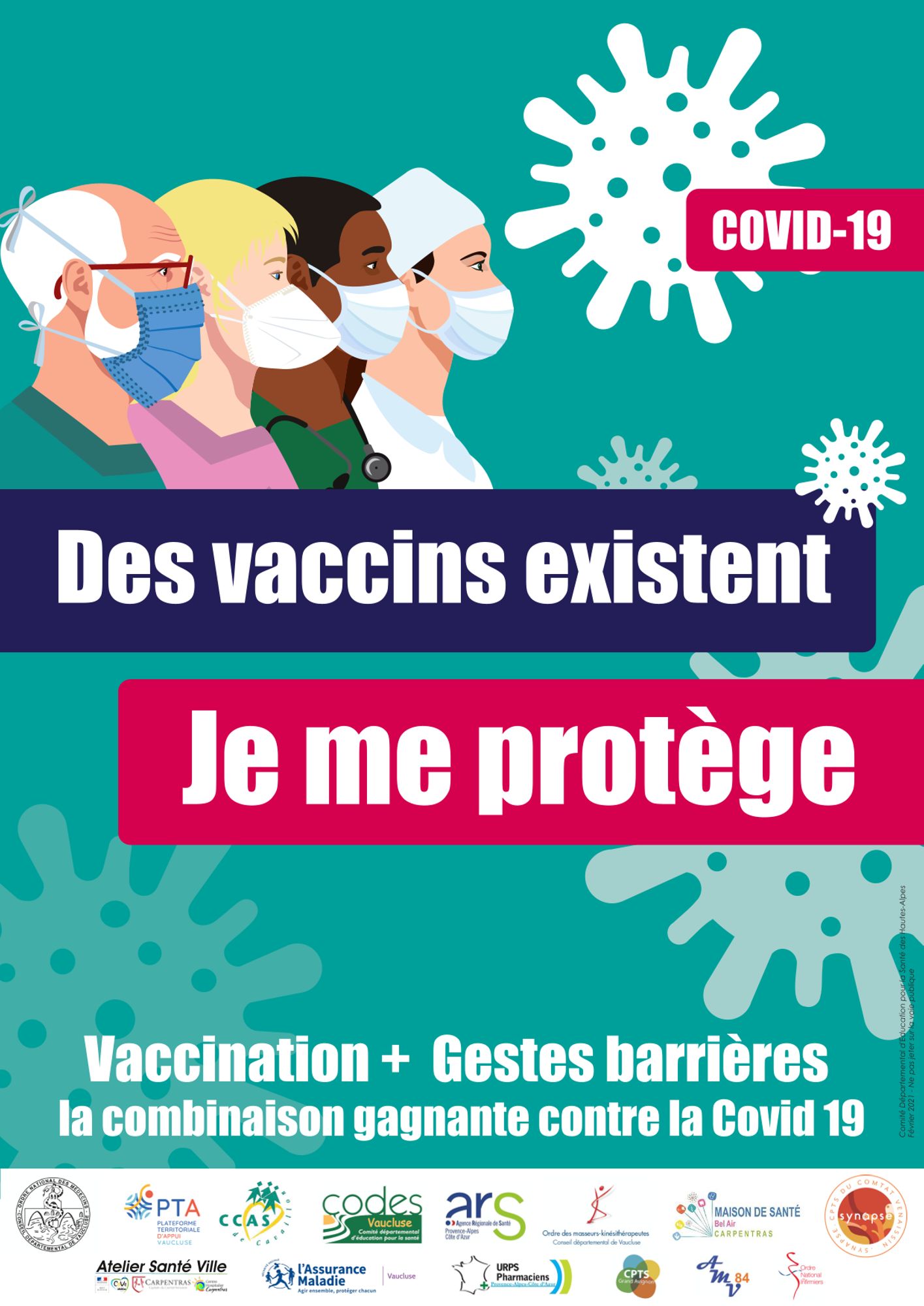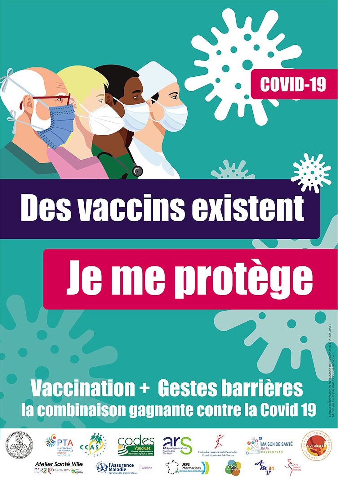 Cette affiche a été déclinée avec les logos des acteurs de santé en Vaucluse pour être diffusée à tous les publics du département.