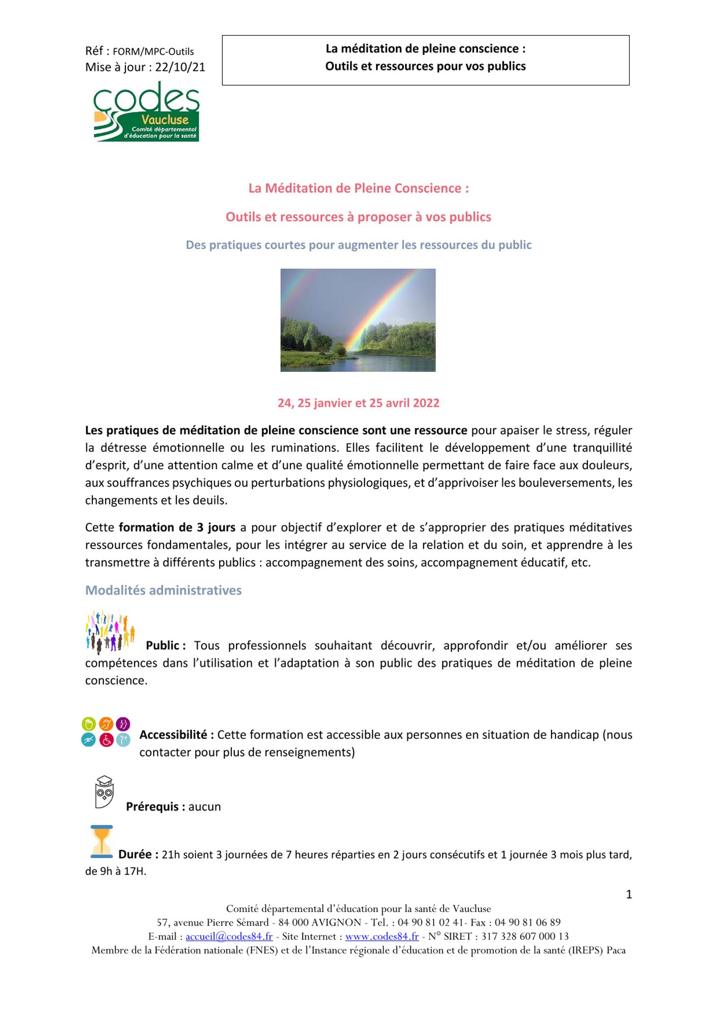 04.90.81.02.41 ou accueil@codes84.fr