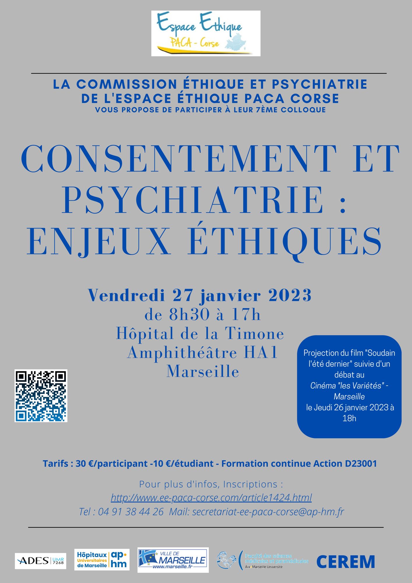 Organisé par la Commission éthique et psychiatrie de l’Espace éthique Paca-Corse (Ee-Paca-Corse), ce colloque a pour vocation d'inviter à une réflexion multidisciplinaire visant à éclairer les enjeux éthiques du consentement dans l'orientation de nos choix thérapeutiques tant au niveau de la clinique singulière que des actions institutionnelles et sociétales.