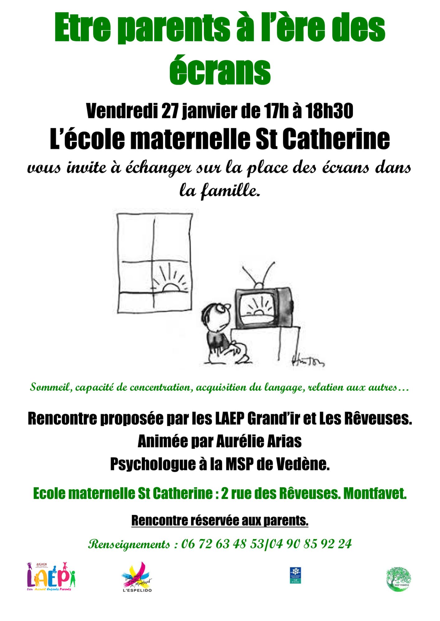 Les LAEP Grand’ir et Les Rêveuses propose cette rencontre qui sera animée par Aurélie Arias, psychologue à la Maison de santé pluriprofessionnelle de Vedène.