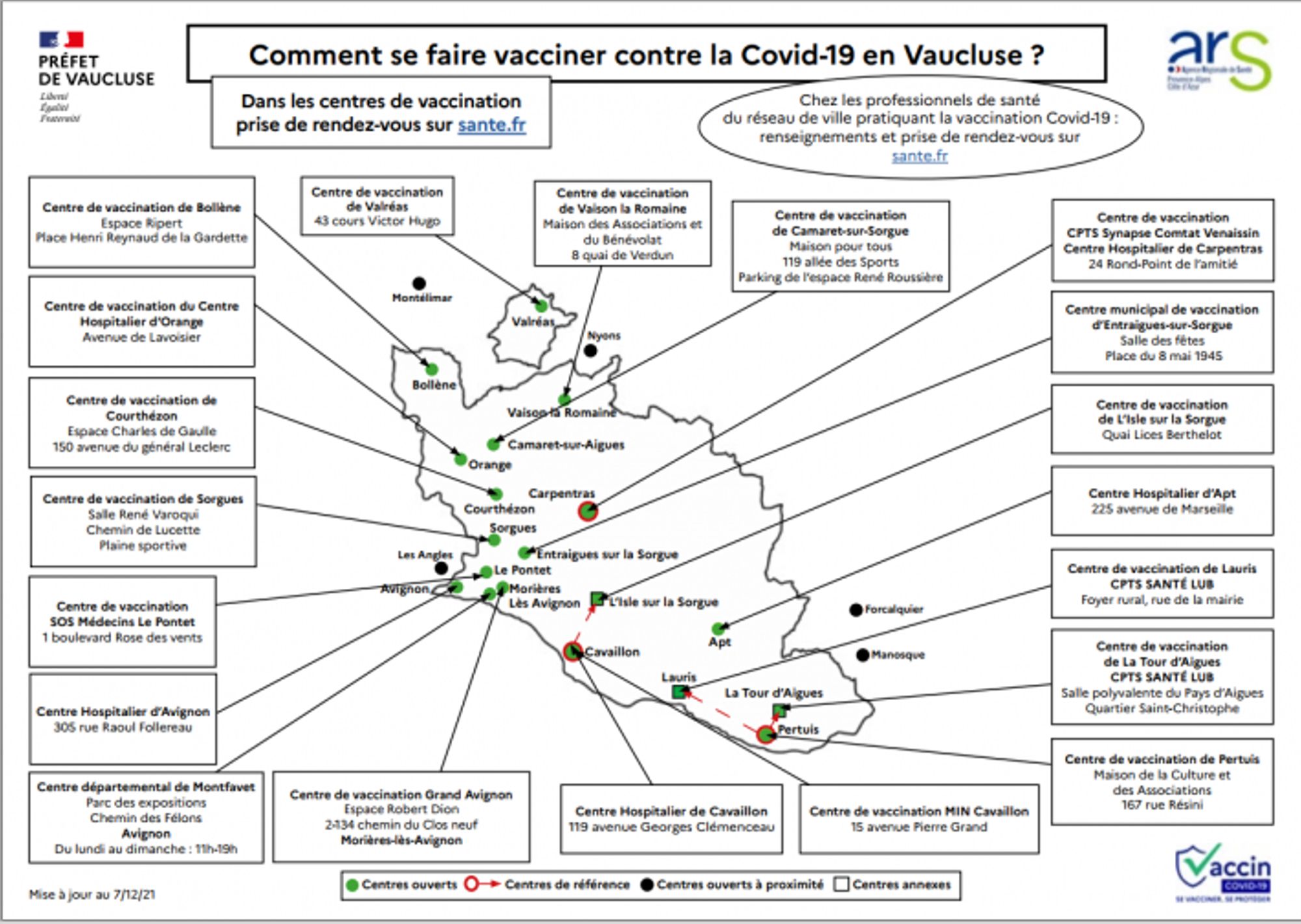 La Préfecture de Vaucluse a édité une carte réunissant les 20 centres de vaccination dans le département.