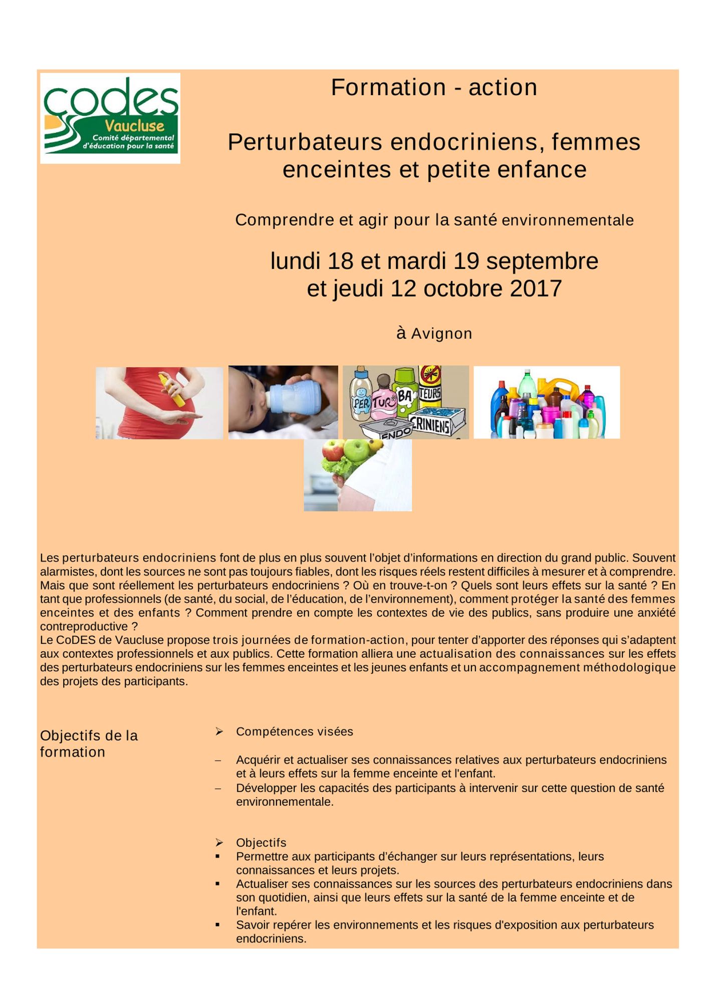 Perturbateurs endocriniens, femmes enceintes et petite enfance. Formation - Action