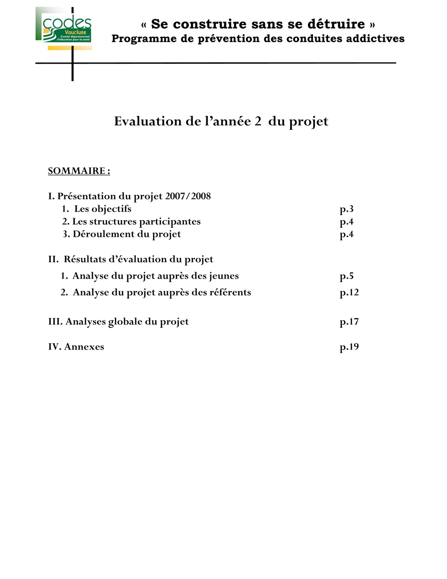 Evaluation du programme mené en 2007/2008 par le CoDES 84