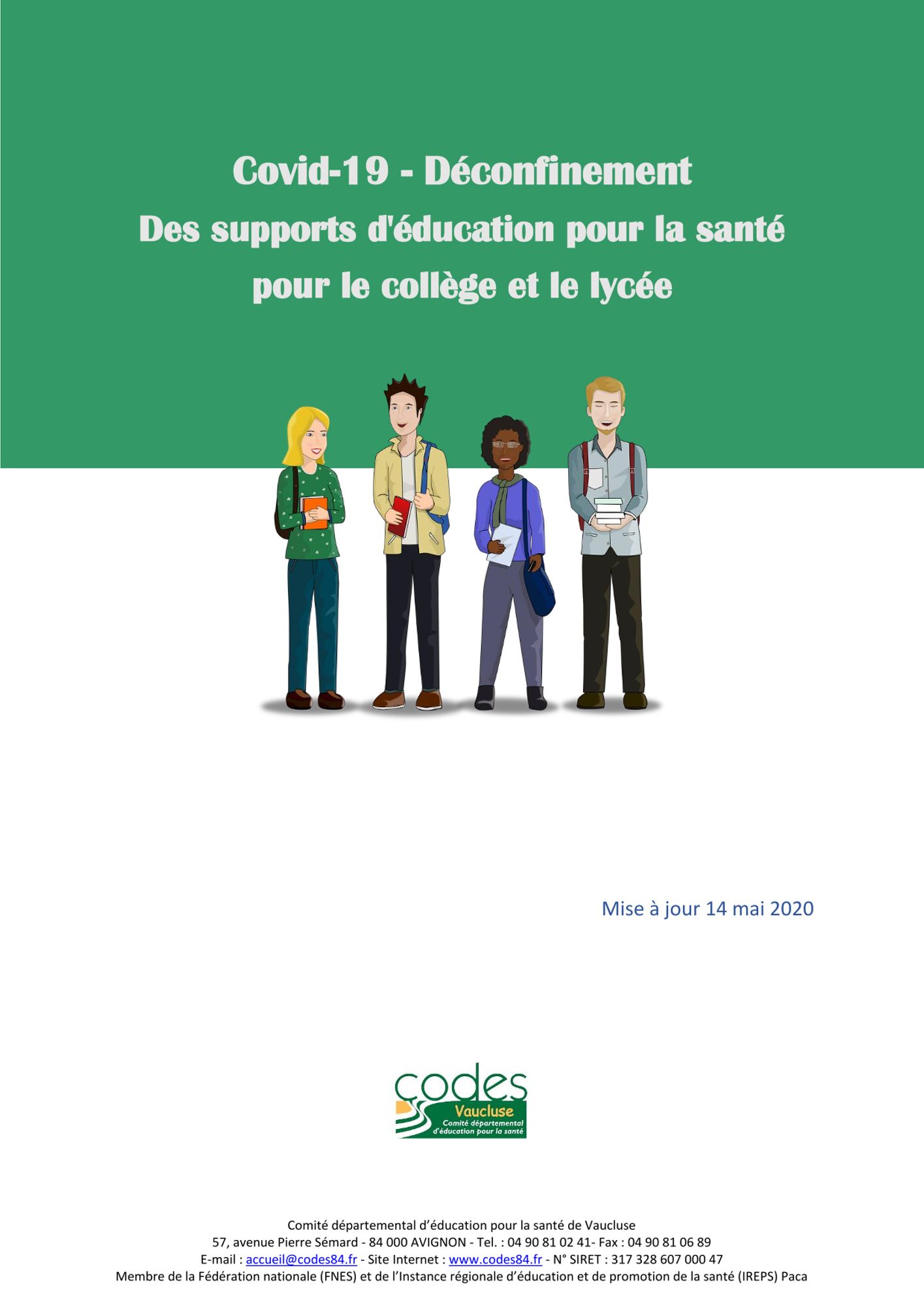 A destination de l'Education nationale et validé par la Direction académique de Vaucluse, il propose aux enseignants et aux équipes éducatives des supports pédagogiques pour aborder 4 thématiques principales avec les collégiens, les lycéens et les parents lors du retour en classe :